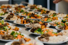 Free hot meals are prepared and served